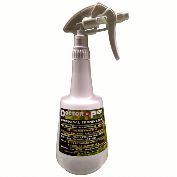DOCTOR PEST FUNGICIDAL TERMINATOR is an organic formulation of our INSECTICIDAL SOAP + EUCALYPTUS OIL + NEEM OIL. It's a safe, low toxicity and effective organic garden solution that controls a broad-spectrum range of fungicidal and bacterial diseases.